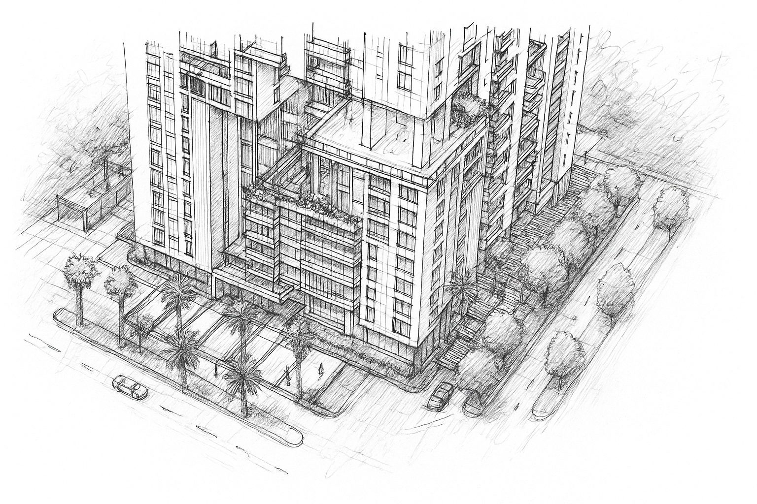 A landmark of vertical luxury neighborhood , where terraced sky apartments embrace panoramic views and sustainable design in the city of Jaipur.