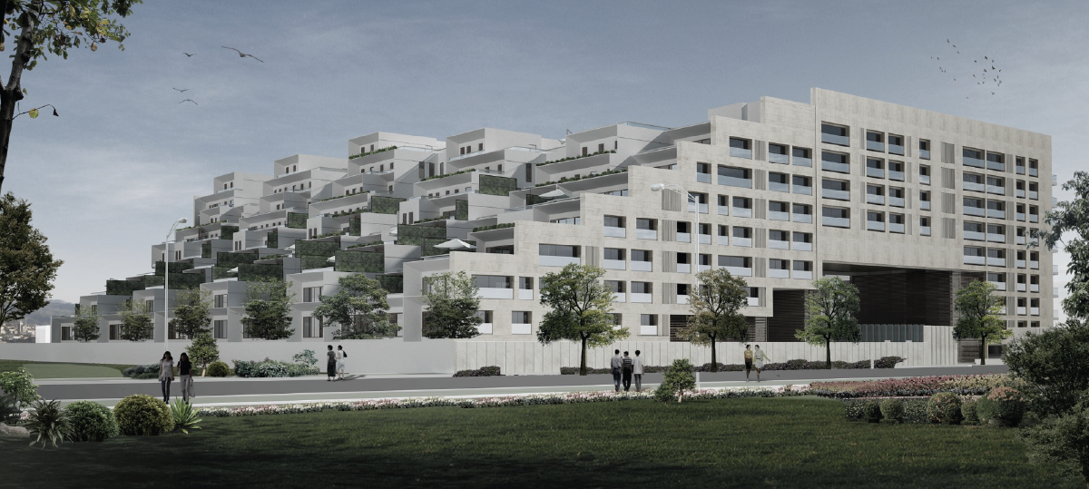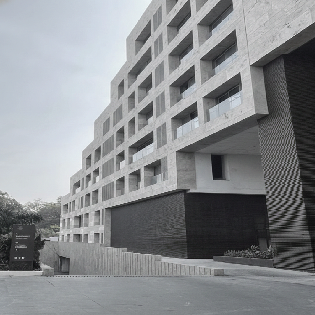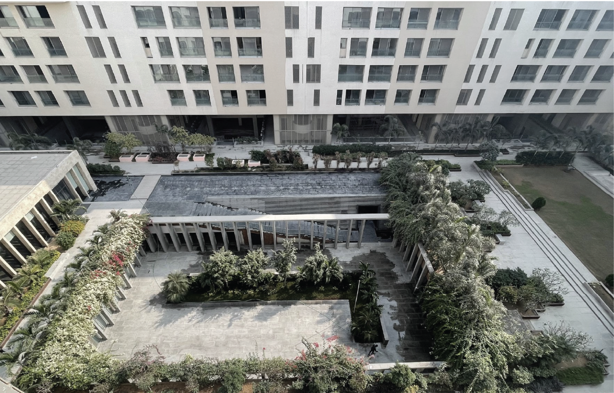 This high-end residential development takes pride of place at one of the few exclusive sites encircling the Statue Circle, a memorial of Jaipur founding. In collaboration for Concept with the international firm, Studios NY, the development is an innovative architectural response to the unique site potential. It creates a cascade of terraced homes along the circular axis within the rectangular monolith of the building. The design is a study of negative spaces carved from the monolithic block, creating dramatic entries to the campus and various tower lobbies. They are also used to create cool light wells to penetrate light and ventilation into the deeper recesses of the linear apartments.